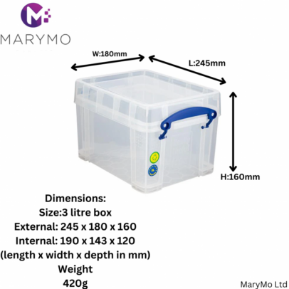 Really Useful Box Clear Plastic Box Storage for Art & Craft – 3L Clear