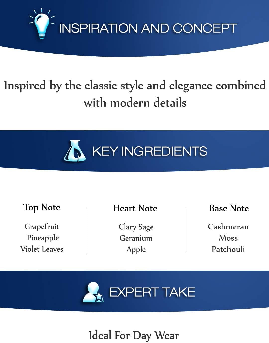 A citrus woody fougère fragrance Elegant, with a bold edge For a man of confident style, ELEGANT BOTTLE: The Classic Blue is housed in a patterned glass bottle, finished with a sleek metallic blue cap, embodying the perfect blend of style and functionality. Apply 1-2 sprays to pulse points such as wrists, neck, and behind the ears. For longer lasting scent, apply to slightly damp skin or reapply as needed.