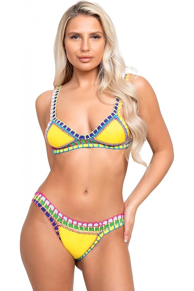 - Playa Bikini Set: Embrace laid-back elegance with our Playa by Kianda Bikini Set, offering a harmonious blend of style and comfort. Inspired by the serene beauty of the coastline, this set is perfect for beach getaways, poolside lounging, tropical escapes, and styling for festivals. Explore the Kianda store for available colorways, including royal blue and black with rainbow elastic accents, lilac and yellow with rainbow elastic accents, and black and white with sparkling gold accents.