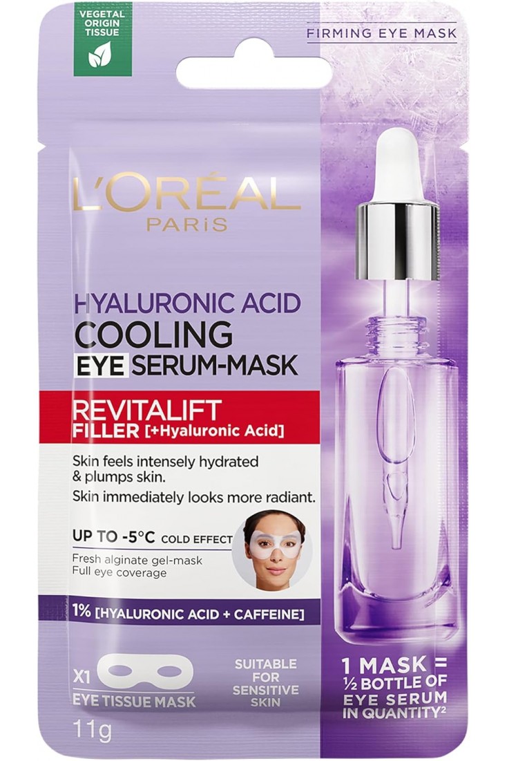 Introducing the L’Oréal Paris Hyaluronic Acid Cooling Eye Serum-Mask formulated with 1% Hyaluronic acid + caffeine. Giving full eye coverage, each tissue mask contains ½ bottle of eye serum in quantity*, and has a cooling cryo effect, helping reveal revived looking eyes.