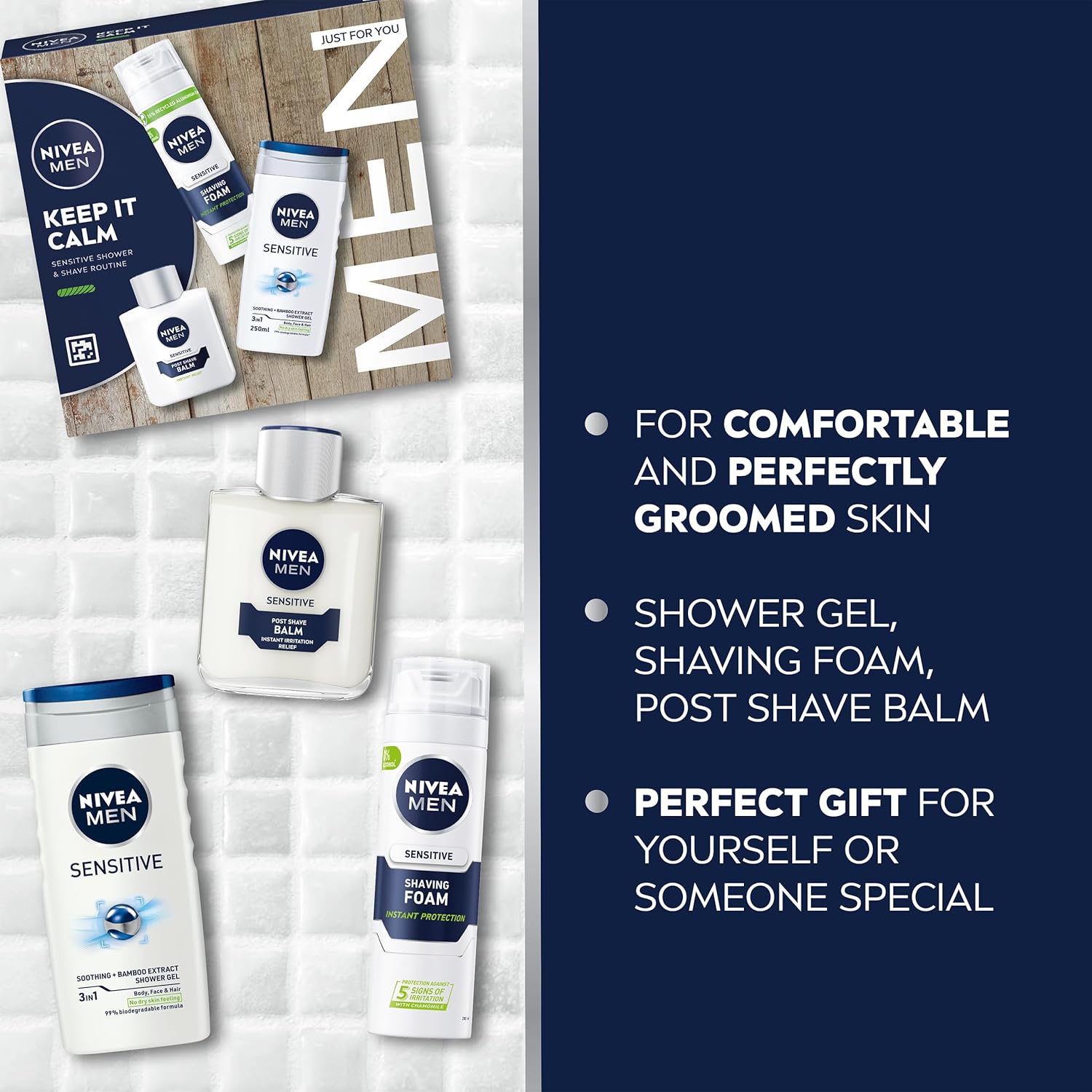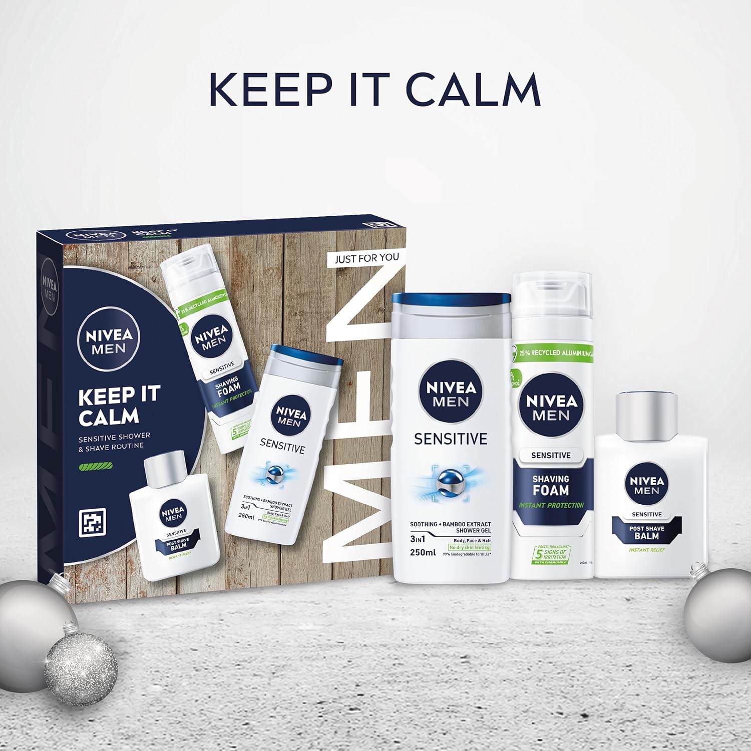 NIVEA MEN Keep It Calm Gift Set (3 Products), Men’s Skincare Gift Set for Sensitive Skin with Shower Gel, Shaving Foam, and Post Shave Balm