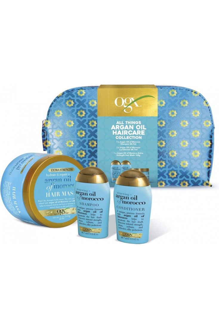 - Included 1 OGX Argan Oil Travel Size Shampoo (88.7 ml), 1 OGX Argan Oil Travel Size Conditioner (88.7 m) and 1 Argan Oil Extra Strength hair mask (168 g)