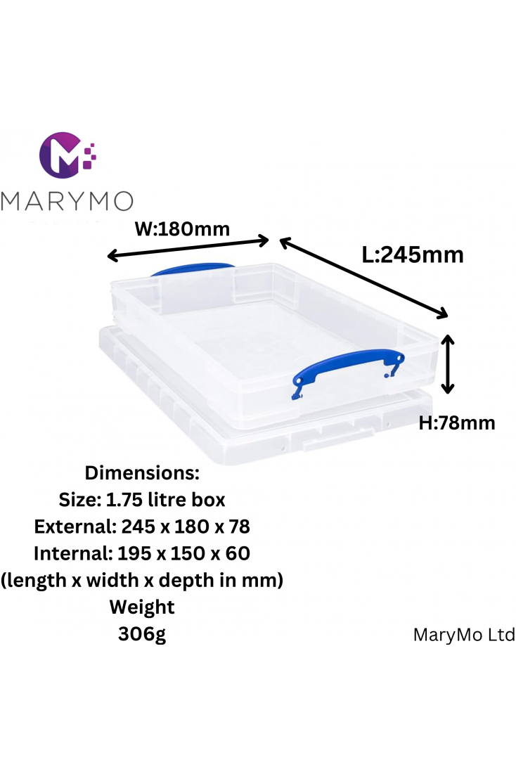 Really Useful Box Clear Plastic Box Storage for Art & Craft - 1.75L Clear