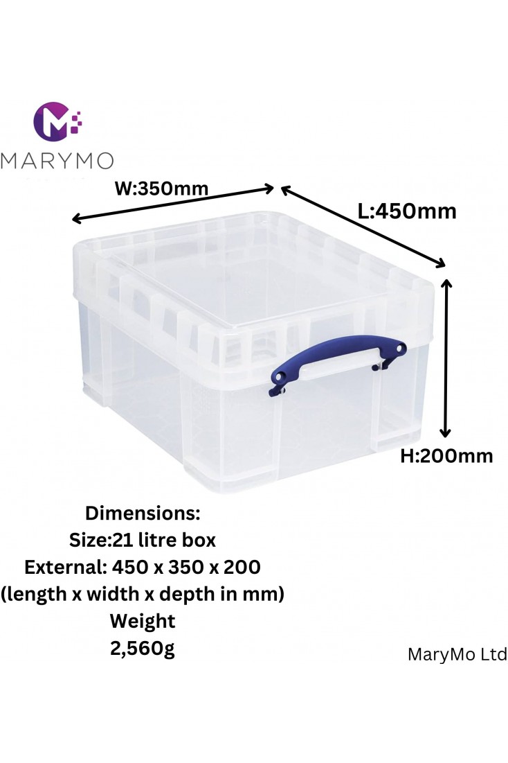 Really Useful Box Plastic Storage 21 Litre with XL Lid Clear