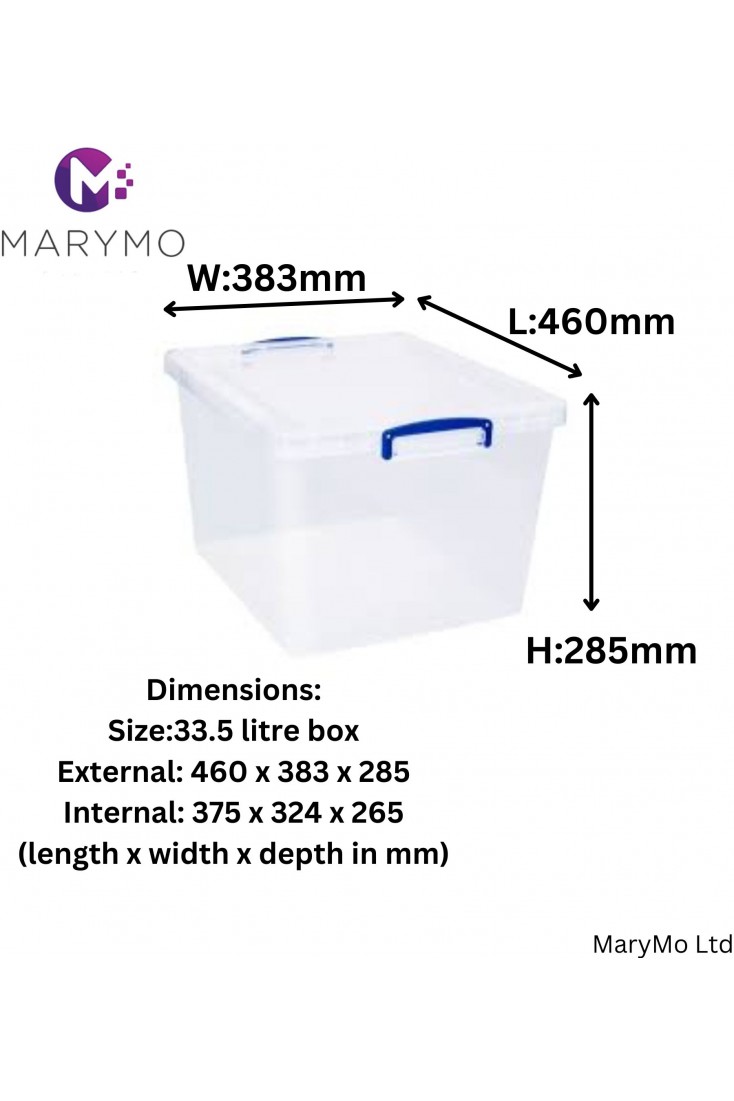 Really Useful Box Clear Plastic Box Storage for Art & Craft - 33.5L Clear