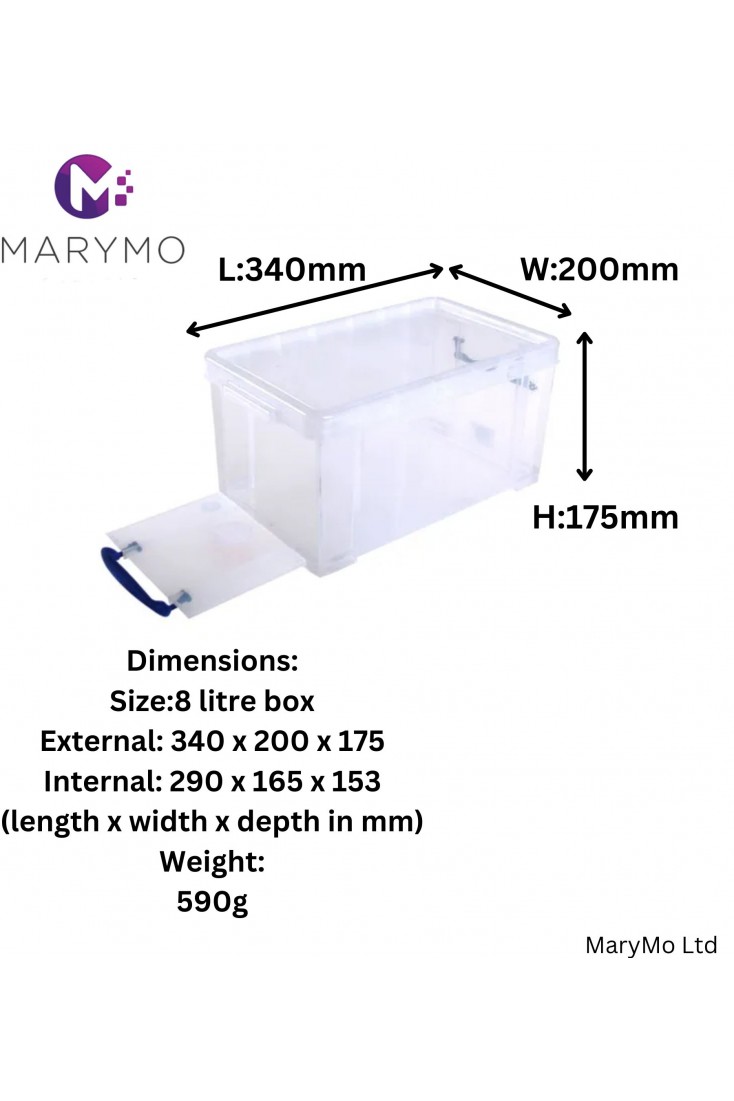Really Useful Box Clear Plastic Box Storage for Art & Craft – 8L Clear